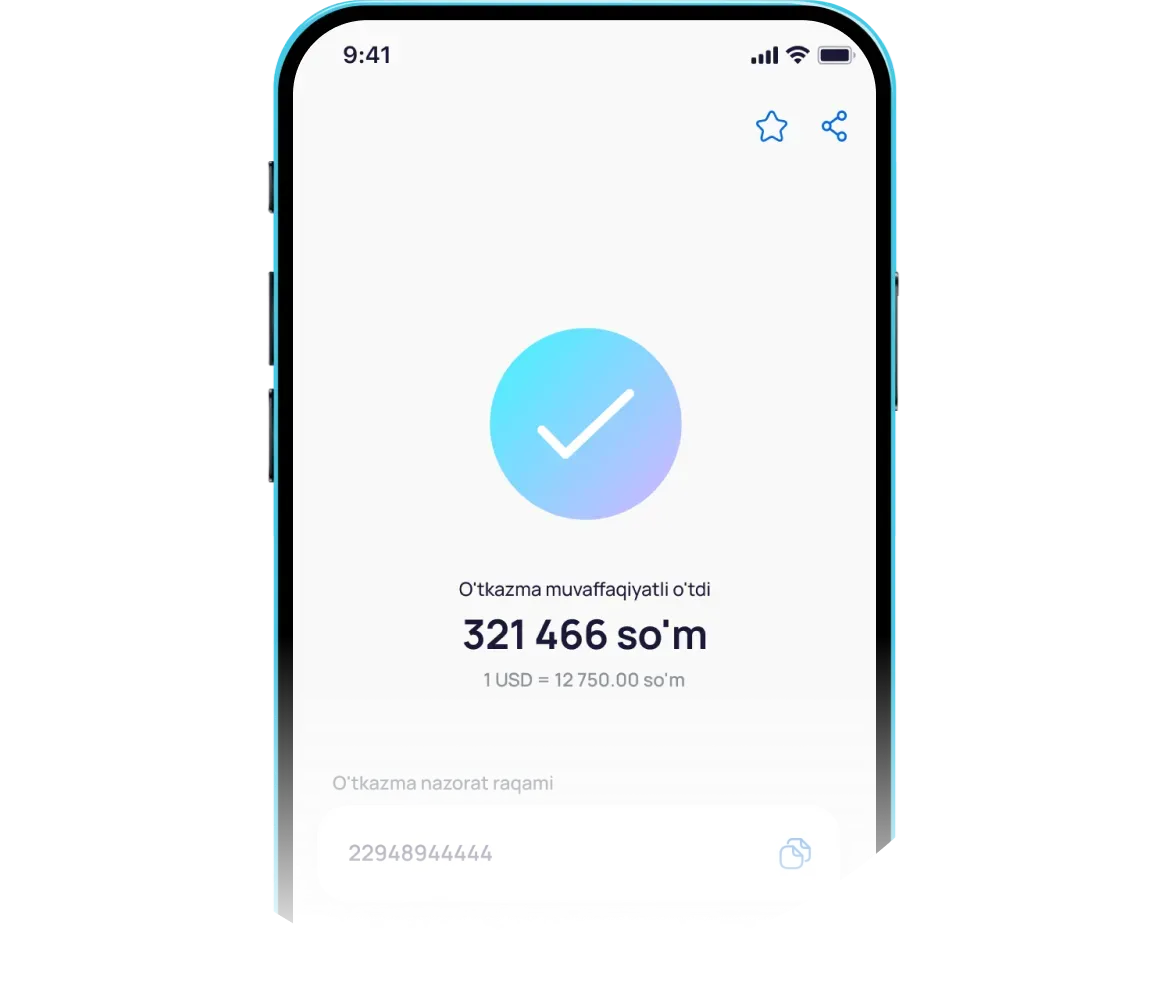 Pul o‘tkazmasi holatini kuzatish Onlayn yoki mobil ilova orqali noyob o‘tkazma raqami bo‘yicha amalga oshiriladi