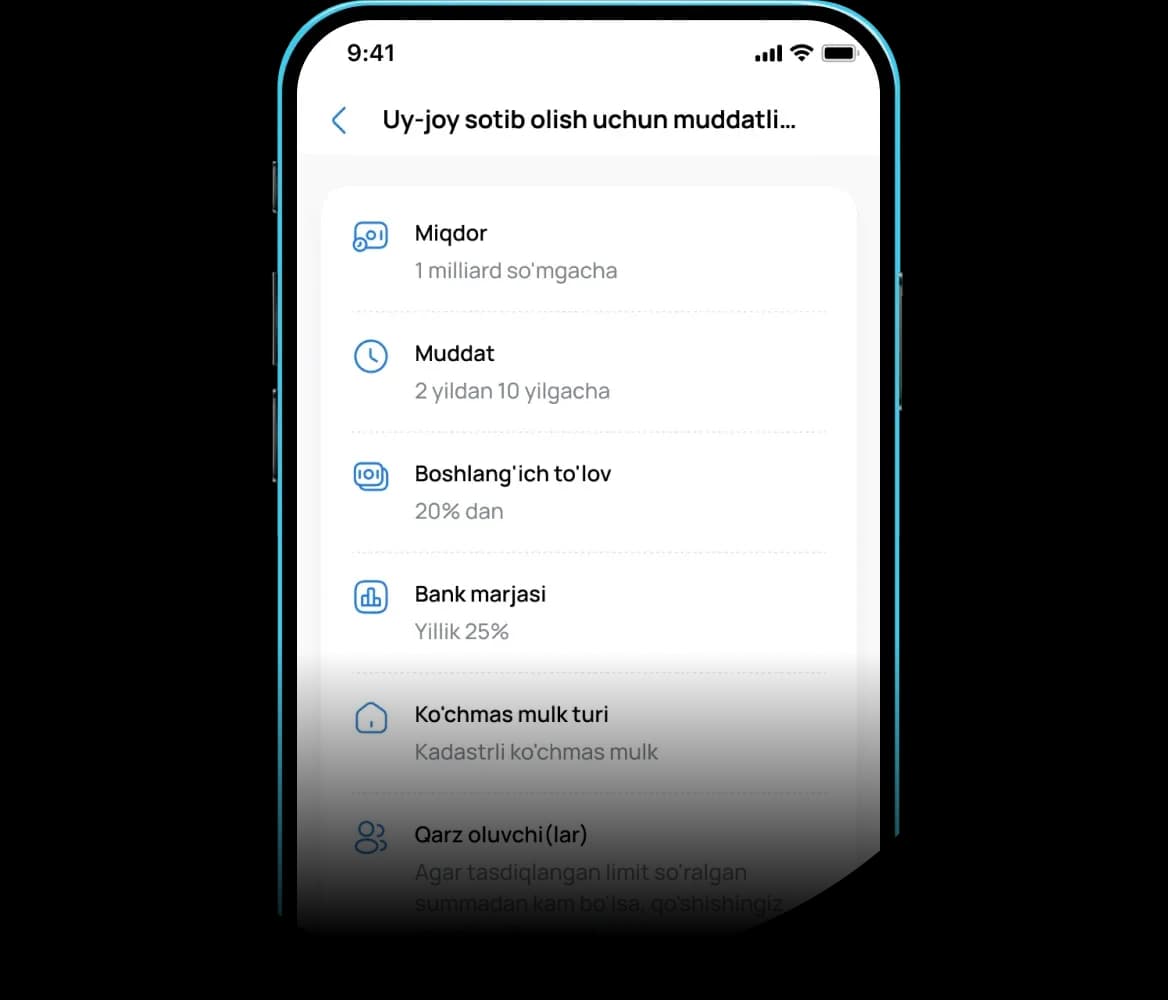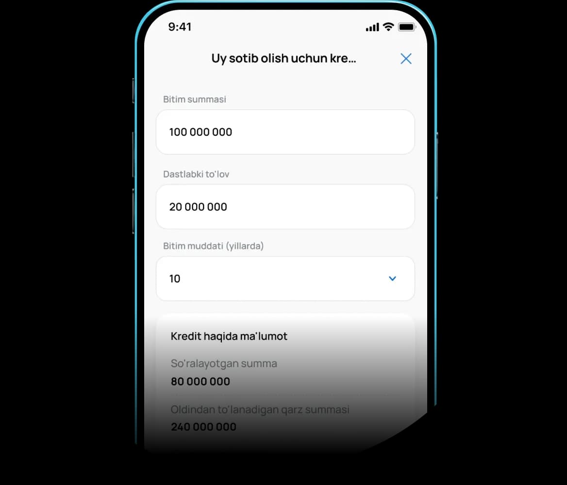 Openbank sizga qulay shartlarda uy-joy sotib olish uchun muddatli to‘lovni taklif etadi – tez, shaffof va ishonchli. Onlayn ariza qoldiring va qisqa vaqt ichida skoring natijasini oling.