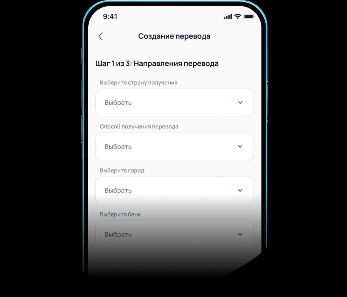 Отправка без открытия банковского счёта - достаточно мобильного телефона и базовых данных отправителя и получателя.